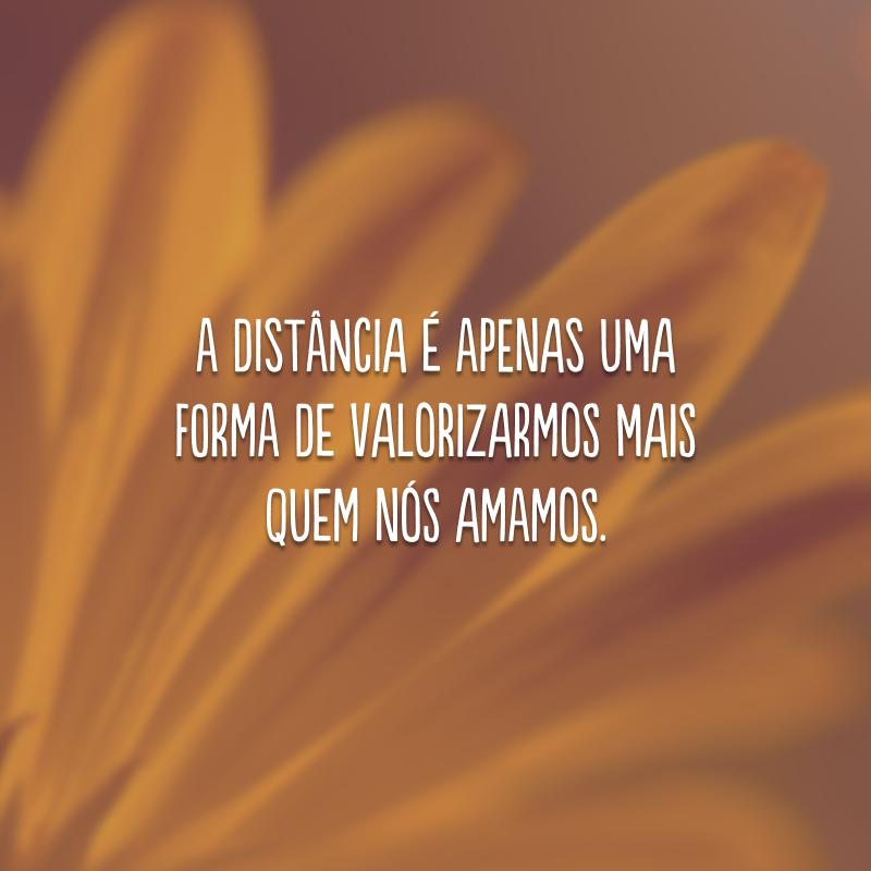 A distância é apenas uma forma de valorizarmos mais quem nós amamos.