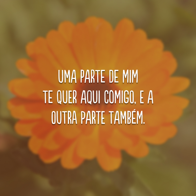 Uma parte de mim te quer aqui comigo, e a outra parte também.