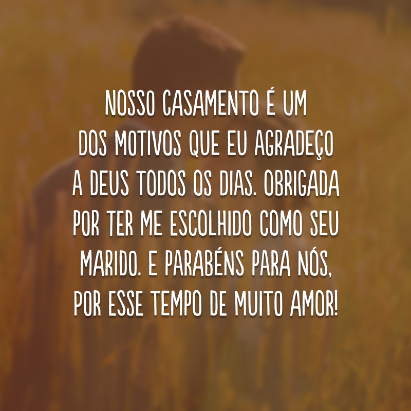 Nosso casamento é um dos motivos que eu agradeço a Deus todos os dias. Obrigada por ter me escolhido como seu marido. E parabéns para nós, por esse tempo de muito amor!