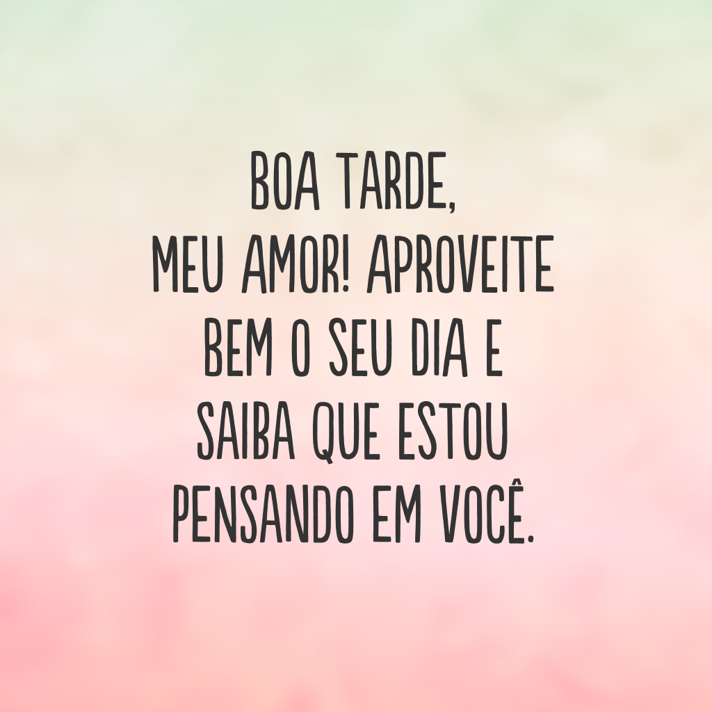 Boa tarde, meu amor! Aproveite bem o seu dia e saiba que estou pensando em você.