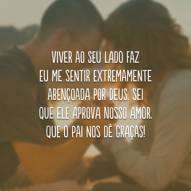Viver ao seu lado faz eu me sentir extremamente abençoada por Deus. Sei que Ele aprova nosso amor. Que o Pai nos dê graças!