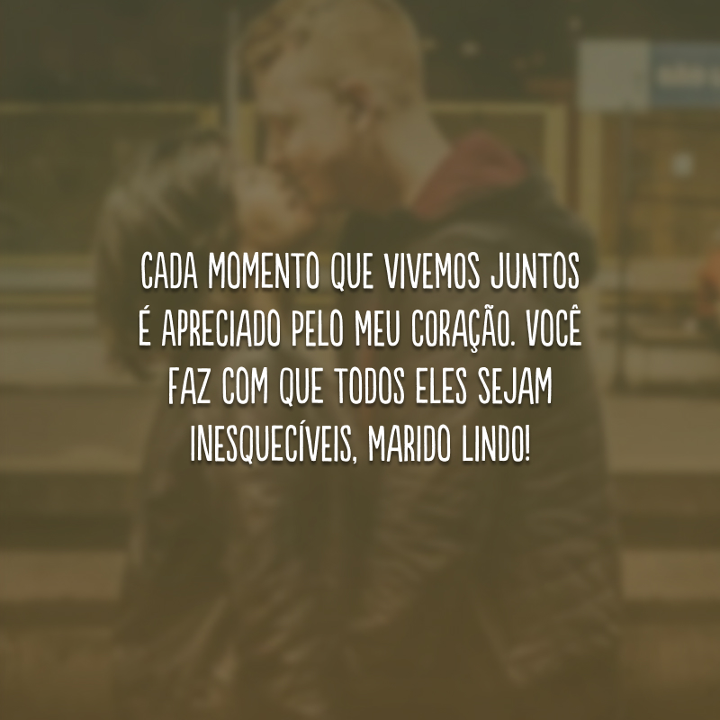 Cada momento que vivemos juntos é apreciado pelo meu coração. Você faz com que todos eles sejam inesquecíveis, marido lindo!