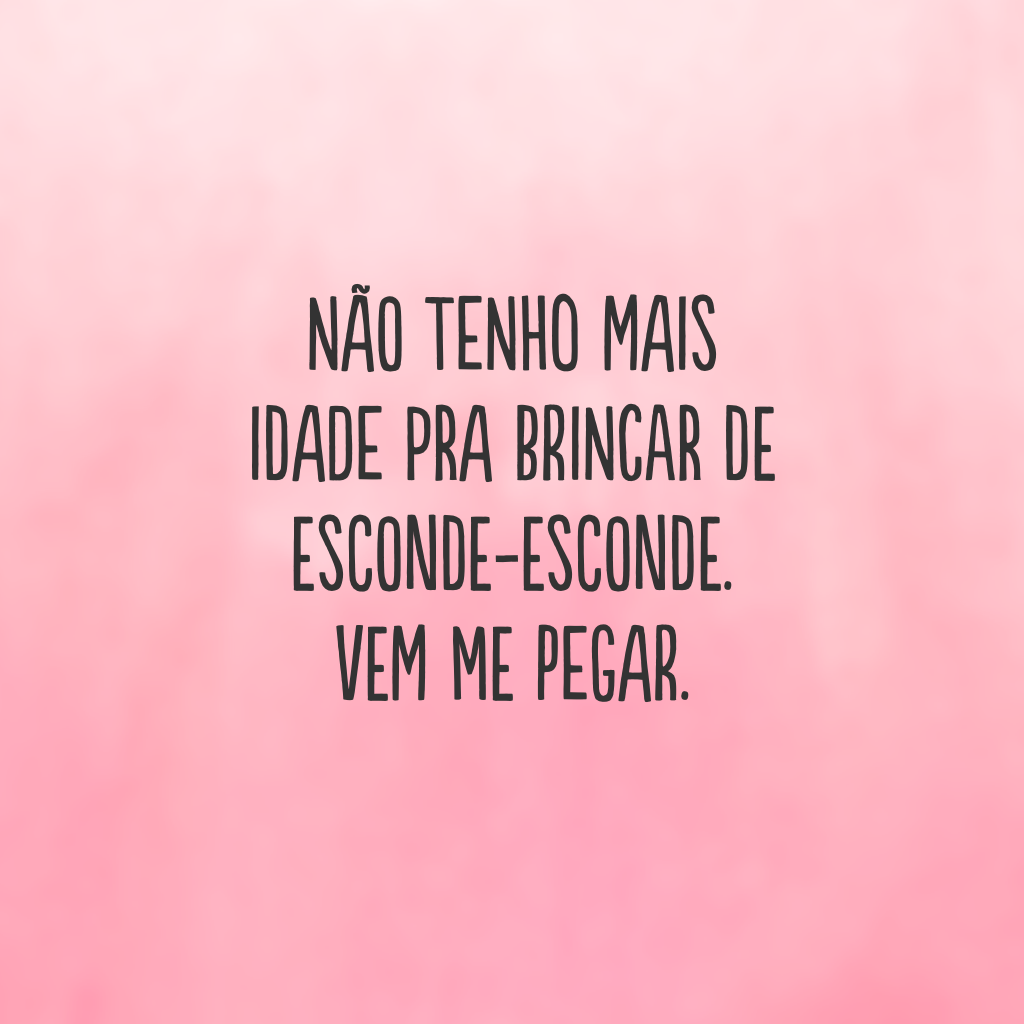 Não tenho mais idade pra brincar de esconde-esconde. Vem me pegar.